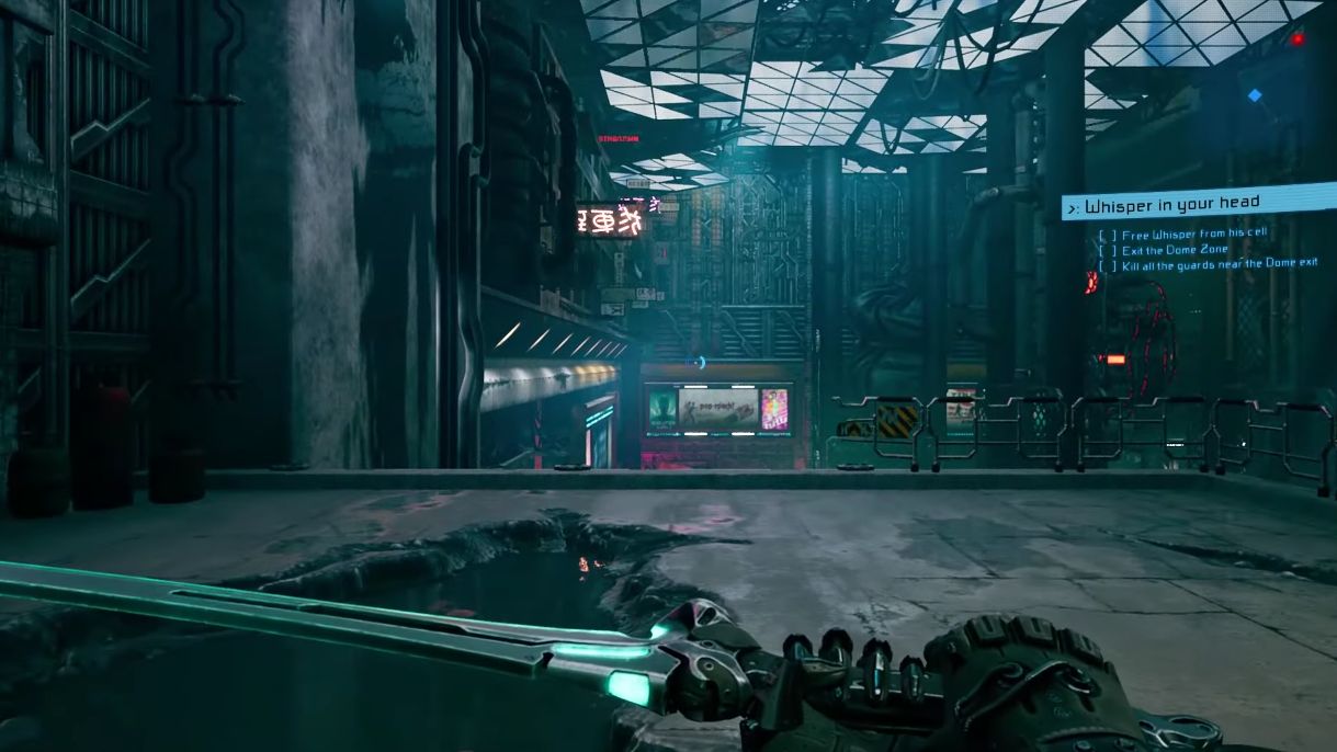Given its brevity there’s a surprisingly meaty upgrade system. You plug in implants like you manage a Resident Evil inventory, fitting tetromino powers into your brain grid. A drip feed of abilities sees combat options blossom over the campaign, from teleporting sword strikes to brainwashing your enemies, and further mods can radically alter their behaviour. Or just remove the edge off a difficulty spike, if you feel like hanging back, plugging in an ability recharging mod and waiting to unleash projectiles from a safe distance. Not how it’s meant to be played I imagine, but handy for more disheartening brick walls.