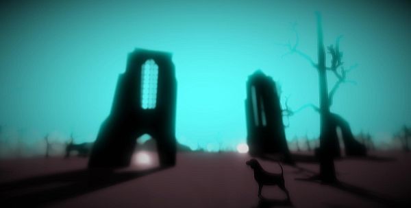 What stands out first is quite what a realistic dog it is you play. The game's sparse world glows gorgeously, a dream-like ethereal desert, dotted with trees and shapes. And you, a shadowed dog, trot about it splendidly. A simple-appearing animation captures dog movement perfectly, adding a peculiar dose of real-world into its fantasy.
