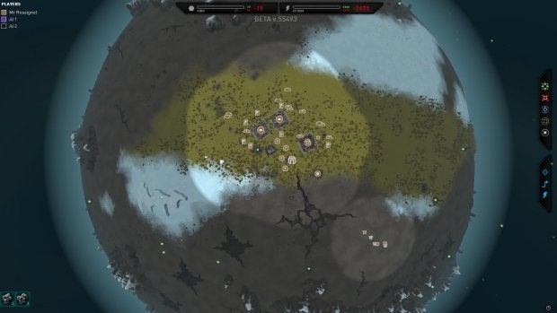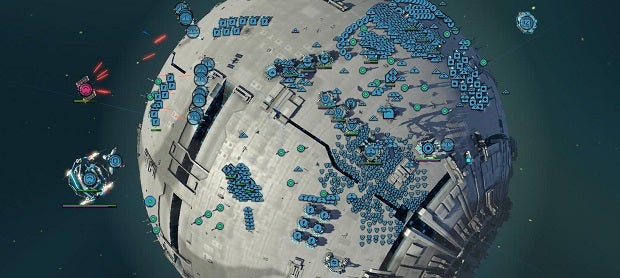 The most gobsmacking route to victory, however, is the one shown off in a lot of the game’s advertisements. It involves sending a team of builder dudes to a far-flung planetoid, building a huge thruster, igniting said thruster, and steering the planetoid itself into your enemy’s homeworld. The destruction is immense, unavoidable and hilarious. I was the victim of this planet-smashing technique, though not in the way intended.